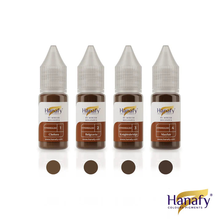 Deze deskundige hybride wenkbrauwpigmenten zijn exclusief door Hanafy ontwikkeld voor de wereldberoemde permanente make-upartiest Miriam Beganova om haar kenmerkende hyperrealistische wenkbrauwen te creëren.