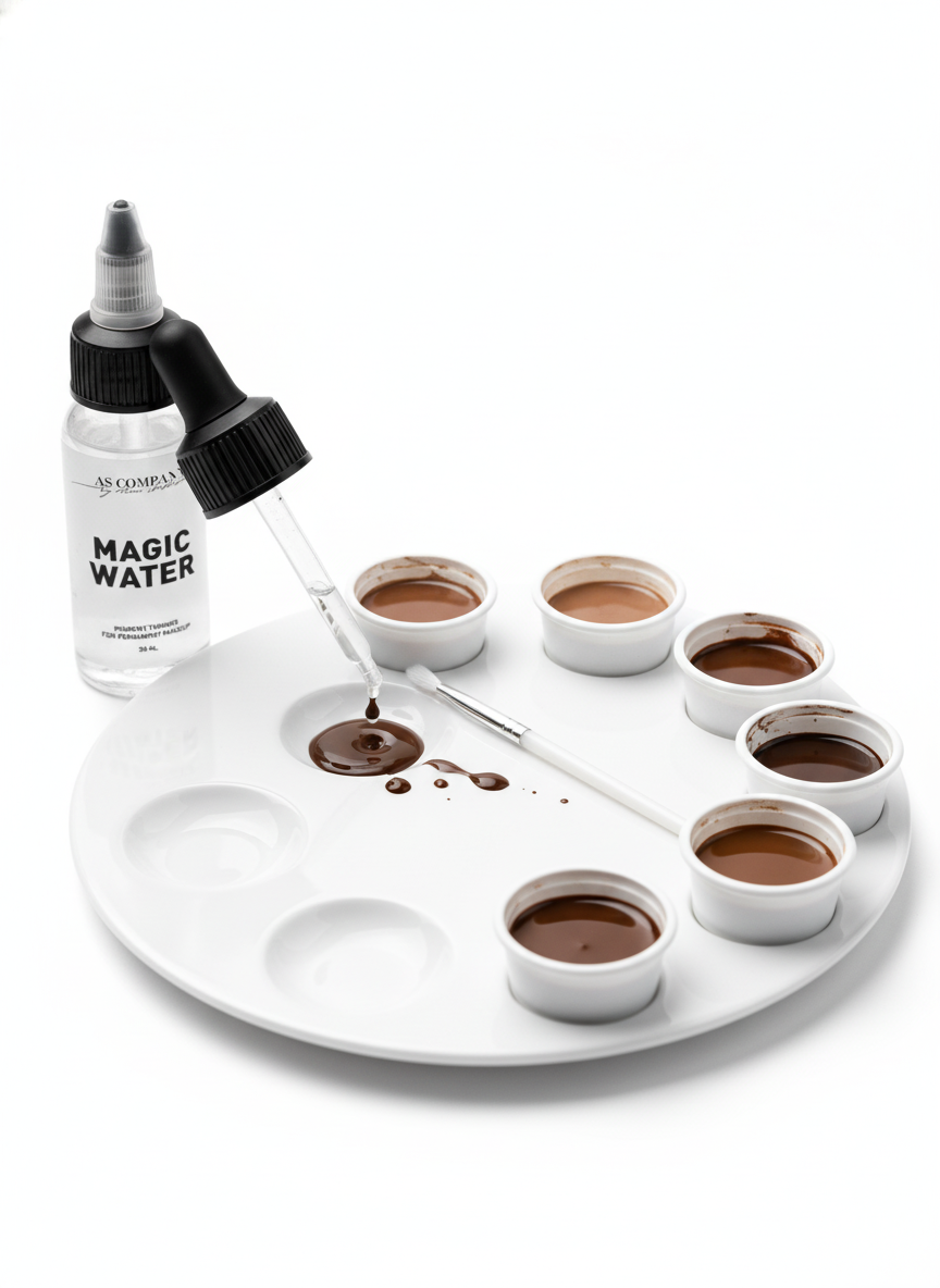 De AS Company Magic Water is een professionele verdunner en thinner voor permanente make-up pigmenten, ontwikkeld om de consistentie en kleurverzadiging van pigmenten met maximale precisie aan te passen. Dankzij de uitstekende mengbaarheid en stabiliteit is het ideaal voor het creëren van vloeiende, gelijkmatige kleurverlopen bij het combineren van meerdere pigmenttinten.