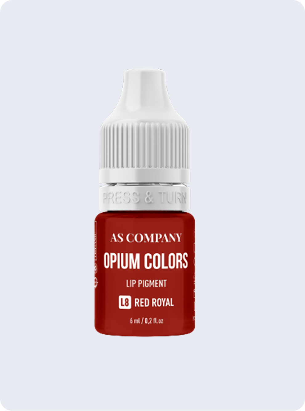 The pigment provides smooth color implantation, strong saturation, and even healing, with a color residue of 60%–90%. L8 Red Royal can be used as a standalone color for bold results or blended with other ASCompany pigments to achieve softer or more customized tones.