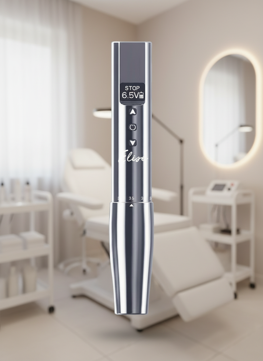 The Viper Elise PMU Machine is a wireless pen-style device designed for professional permanent makeup (PMU) and scalp micropigmentation (SMP) artists. Equipped with an adjustable stroke system from 2.0 mm to 3.5 mm, it offers exceptional flexibility for different techniques — from soft shading to precise lining. The high-quality coreless precision motor ensures stable performance, smooth operation, and minimal vibration. Crafted from durable aircraft-grade aluminum, the Elise is lightweight, ergonomic, and comfortable to hold even during long procedures. With a working time of 3–5 hours, this device provides freedom of movement and consistent power for perfect results.